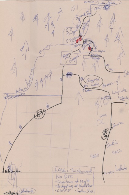 “Dallas North…visually we could have a big funnel, with all the resources of northern Alberta going through the refineries, through Calgary and into Dallas. And there there’s some trees. This is really important. This forest, I mean blue trees – they are sad because their comrades are being chopped down.”