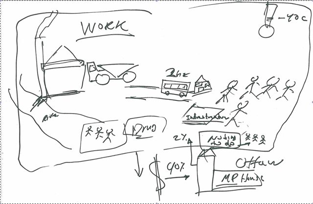 “My life? I’m taking bus. [On my map I have] a road from the place to this and we are in the bus for one hour, two hours every day. So a whole aspect of life it’s between this small house and small infrastructure. Small area.”