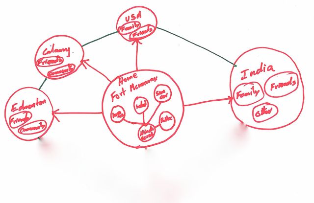 “Four years we have been here. We are originally from India and we lived in the Middle East for some years. I have children. . .We came for landing. We stayed for a month in Edmonton in 2005 and then the same year, we came here. My husband got a job and he moved with the job. . .We can’t become a citizen [in the Middle East], we can’t buy any property [in the Middle East]…Taxes are higher [here in Canada]. Half of our salary goes in that. It took a while for us to get used to this system because we were so very comfortable there and never worried about things. And even for like going back to India, every year they give you the flight charges, so we never worried about our flight tickets. [There is nothing like that here] because you are a resident, after a while you are a citizen here. [Here you are] poorer. You have to do everything by yourself, everything. The only thing is, the freedom of your life is here. There is a freedom for the practice of your religion [in Canada]…We are like gypsies; we are gone somewhere, live somewhere, now we are here. I don’t know next where we are going to be... What’s our identity? Especially for our kids. They can’t say that “I’m Indian” like you know because they are not born in India and after some time when they get their citizenship they are called Canadians but they are not white. What is their identity?”